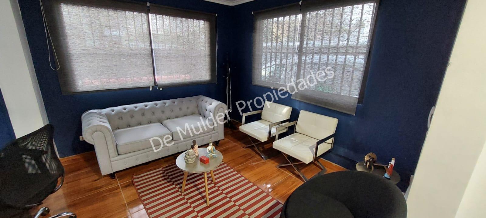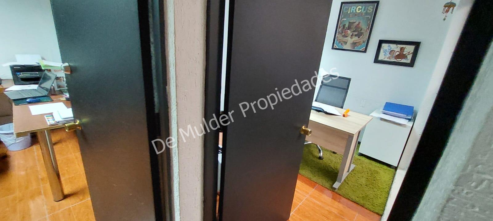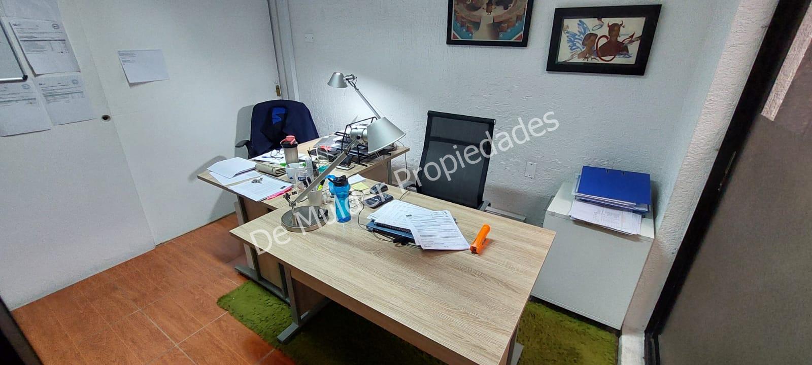 Ingreso portón automático, antejardín que sirve para otro estacionamiento más, hall de entrada y distribución, para área estaciones de trabajo o secretaria, 3 privados, 1 sala reunión. Una construcción con acceso independiente amplio que puede ser utilizado como oficinas y subdivisiones y/o gran bodega. Cocina, 2 baños, con buena luz natural.