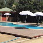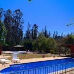 Parcela con Piscina de hormigón y con rejas de 1,20 altura, quincho, gran terraza exterior, jardines formados, estacionamientos para 6 vehículos, durmientes en antejardín.