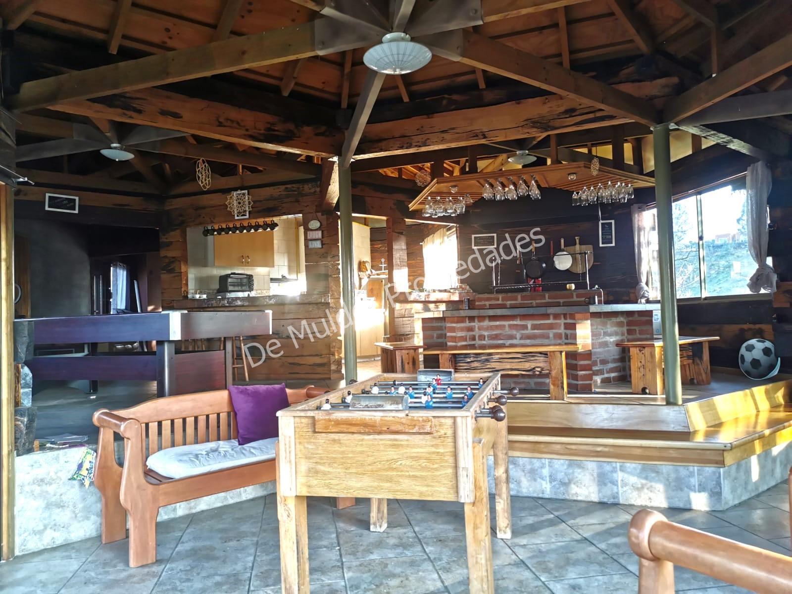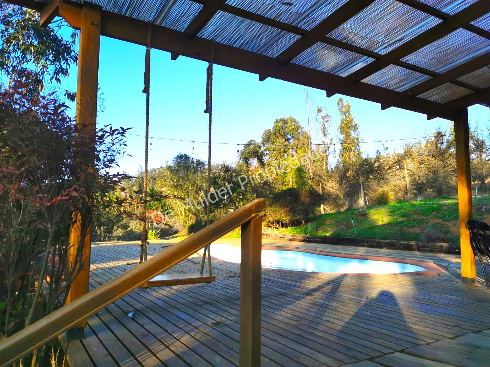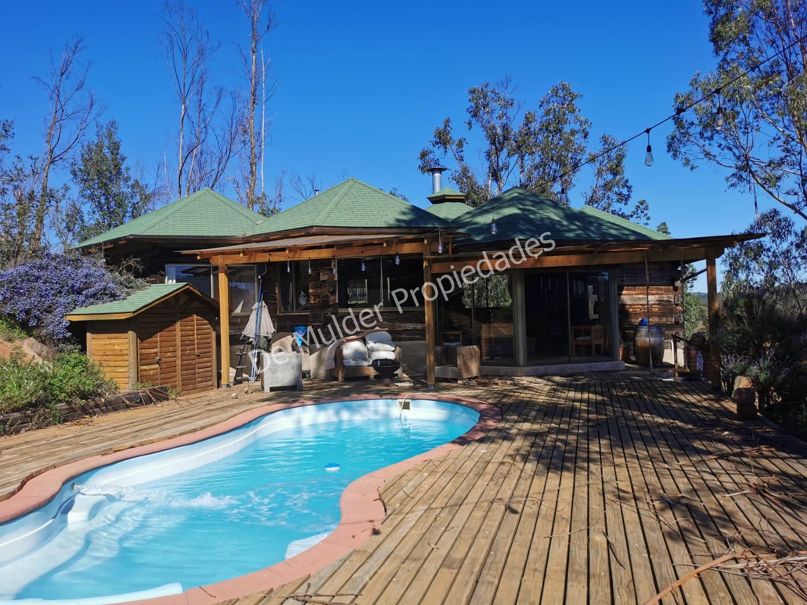PRECIOSA CASA 220/5.050 MTS CON TERRENO SEMI PLANO. Cuenta con piscina. Lindo quincho mesa de poll, baño, living-cocina, iluminación, juegos, Hall de ingreso- Gran living-comedor con mucha iluminación y vigas. 5 dormitorios, incluye dormitorio y baño de servicio. 3 baños con vanitorio. Gran cocina estilo y comedor diario. Chimenea. Precioso Corredor exterior con pilares de madera. Terraza salida living con vista al patio interior. El agua es distribuida a través de la red de la Parcelación, además cuenta con 2 estanque propio de acopio de 5 mil litros Características Condominio Hacienda El Pangal: Accesos controlados con cámaras las 24 horas, caballeriza, áreas verdes, cancha de tenis, multicancha, 2 piscinas, quincho, sala de eventos, juego de niños. Forma de pago: Crédito hipotecario, Contado. Visitas: para conocer la propiedad, puede comunicarse con nuestros agentes de ventas que viven en la zona y conocedores del lugar, CONTAMOS CON EXPERIENCIA, RESPALDO Y UN ALTO ESTÁNDAR DE SERVICIOS, INCLUYENDO SERVICIOS LEGALES Y NOTARIALES. CONTACTO WHATSAPP +569 98632682