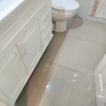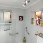 Baño en suite, con piso de porcelanato, muro de cerámica de 1er. nivel, 2 ventanas y luz natural.
